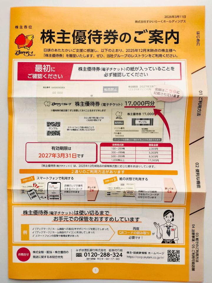 すかいらーくホールディングス (3197)より株主優待が到着しました。