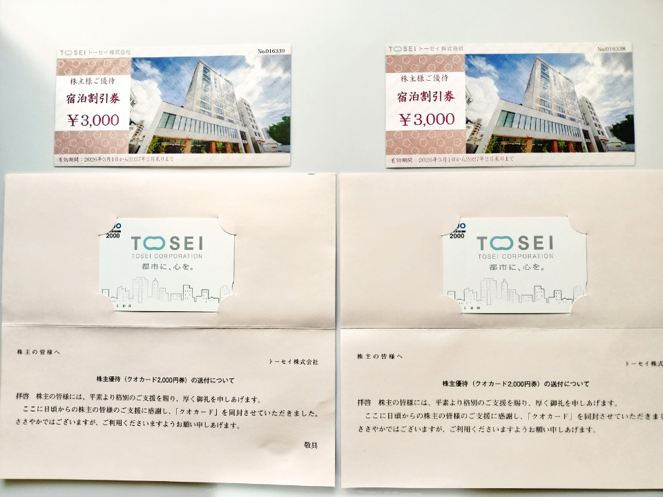 トーセイの株主優待 2名義